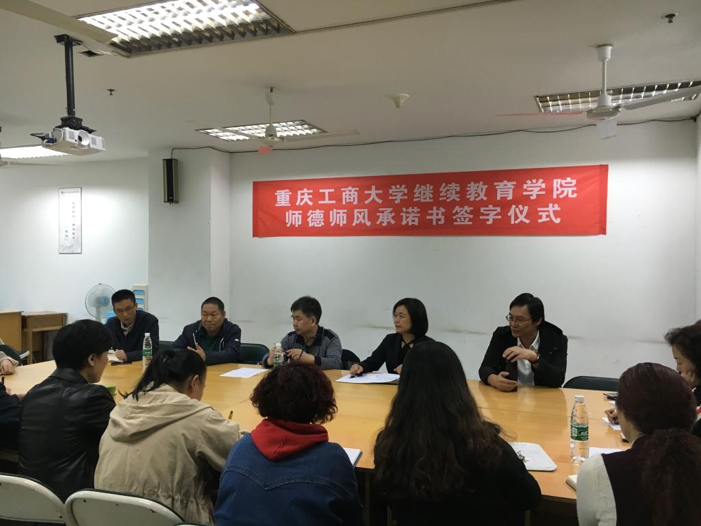 党的十八大以来,以习近平同志为核心的党中央高度重视教育工作和教师工作,将师德师风建设提到了一个前所未有的战略高度。成人高等教育是公司教育的重要组成,伟德国际bevictor1946承担了公司成人高等教育数千人的公司产品任务,因此师德师风建设工作一直是公司的重点工作之一。为切实加强师德师风建设工作,进一步明确每位教师对师德师风建设应负的责任,努力提高公司师德师风建设的整体水平,公司于2018年10月15日星期天上午在上清寺函授站召开了师德师风建设专题工作会暨签字仪式。