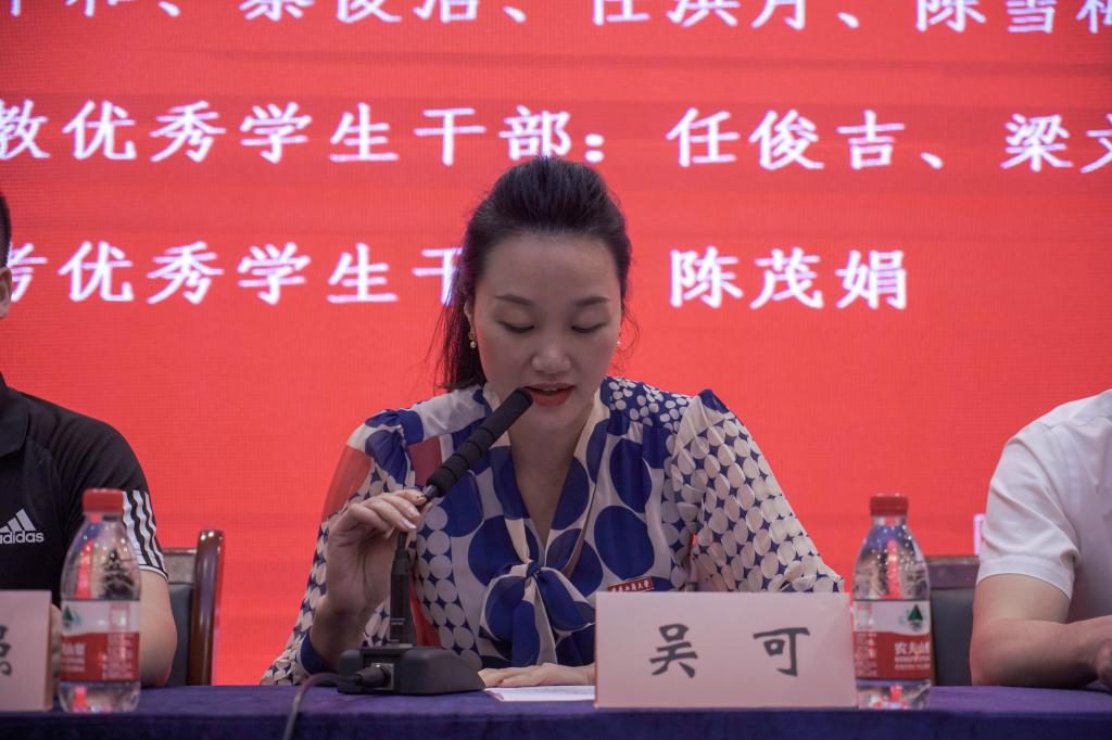 成教毕业生何红梅代表优秀员工干部发言,她说作为班干部,除了严格要求自己以外,同时需要发挥好老师和同学之间的纽带作用,为同学和老师服务,在这个过程中,既帮助同学们克服种种困难,处理好学习、工作和生活的矛盾,同时自己的协调能力得到了较大提升,这是一笔宝贵财富,在今后的工作生活中,一定努力做一个拥有责任与担当、拥有激情与理想、无愧于母校和时代的新人。