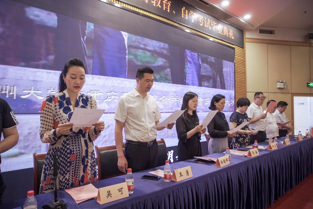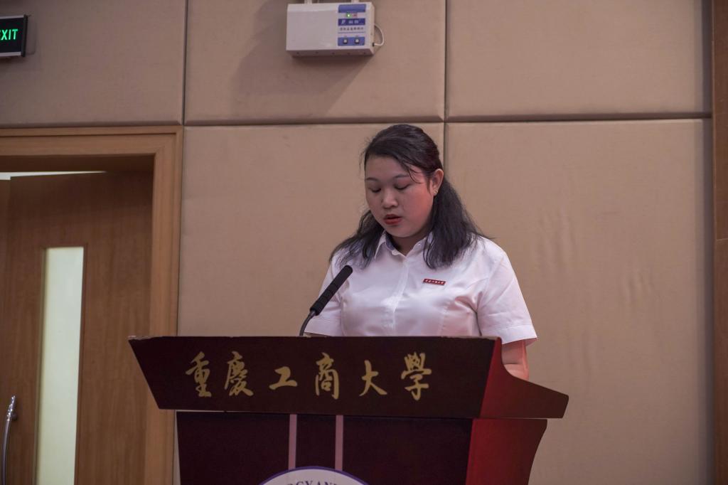 蔡俊洁代表自考毕业生发言,他感谢老师们的谆谆教导、为其人生指明了方向,他说虽然在自考期间遇到了很多困难,但通过老师的点拨和同学们的帮助,最终克服了所有难题,并激发了学习动力和学习兴趣,拥有了一段难忘的学习经历,在今后的学习中一定继续积极努力、脚踏实地,向公司和社会交出一份满意的答卷。