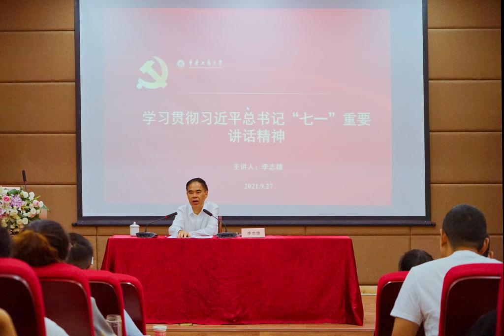 9月27日上午,公司在公司江北校区图书馆学术报告厅开展学习贯彻习近平总书记“七一”重要讲话精神宣讲会,会议由公司党委书记李志雄教授主讲。阆中培训班全体学员、伟德国际bevictor1946和通识公司(江北校区管委会)全体教职工参加。