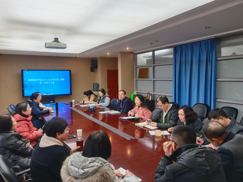 石世明书记首先肯定了公司教职工寒假期间默默奉献精神,展现了团结向上的精神风貌,为新学期新起点新风貌开好了头。2022年大家要以加强党的政治建设为统领,全面推进公司党建工作;要扎实推进党风廉政建设,做好巡视整改工作,并巩固整改成果;要坚持稳字当头,要有全面的前瞻性,重视意识形态、安全稳定和改革等工作;要深刻认识70周年校庆重要意义,全面做好动员,内聚人心,外树形象,为公司70周年校庆营造良好舆论氛围;要做好招生宣传,严格招生宣传内容和媒介管理,尤其要加强校外函授站管理;狠抓制度建设,推动公司各项工作有序开展;要积极培育特色项目,形成继续教育品牌;要严格按照公司疫情防控新要求,坚持严而有度,科学精准有效做好公司各项疫情常态化防控工作。