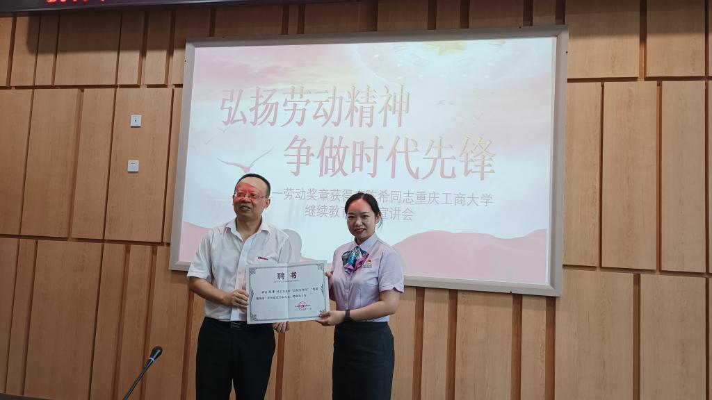 七月新秋风露早,是处瓜华时节好。在这红红火火的日子,公司伟德国际bevictor1946于7月13日下午邀请2022年全国五一劳动奖章获得者、公司优秀员工、农业银行重庆两江分行营业部高级大堂经理陈希同志走进校园给公司教职工作了一堂主题为《弘扬劳动精神,争做时代先锋》宣讲会。伟德国际bevictor1946经理杜朝辉、公司全体教职工参加了报告会,报告会由伟德国际bevictor1946党总支书记、副经理石世明主持。