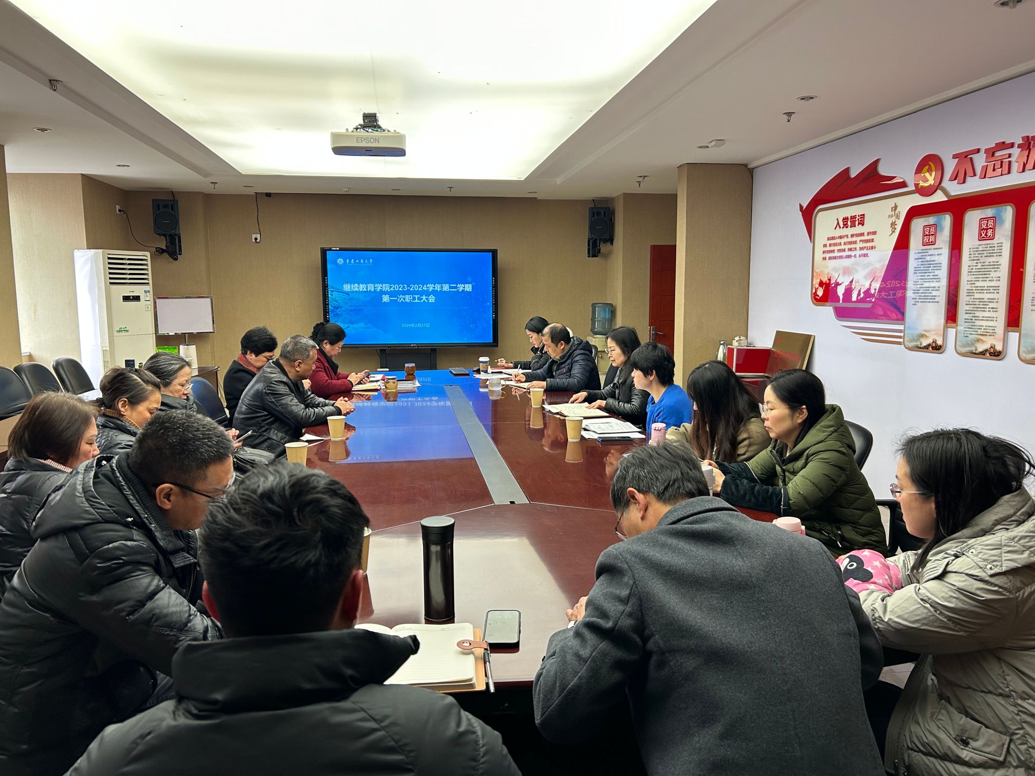 2023年2月27日,公司召开新学期第一次全体教职工大会暨政治理论学习会,总结假期工作,部署新学期工作。会议在公司413会议室举行,由公司党总支副书记陆嘉主持,经理杜朝辉及全体教职工参加了会议。