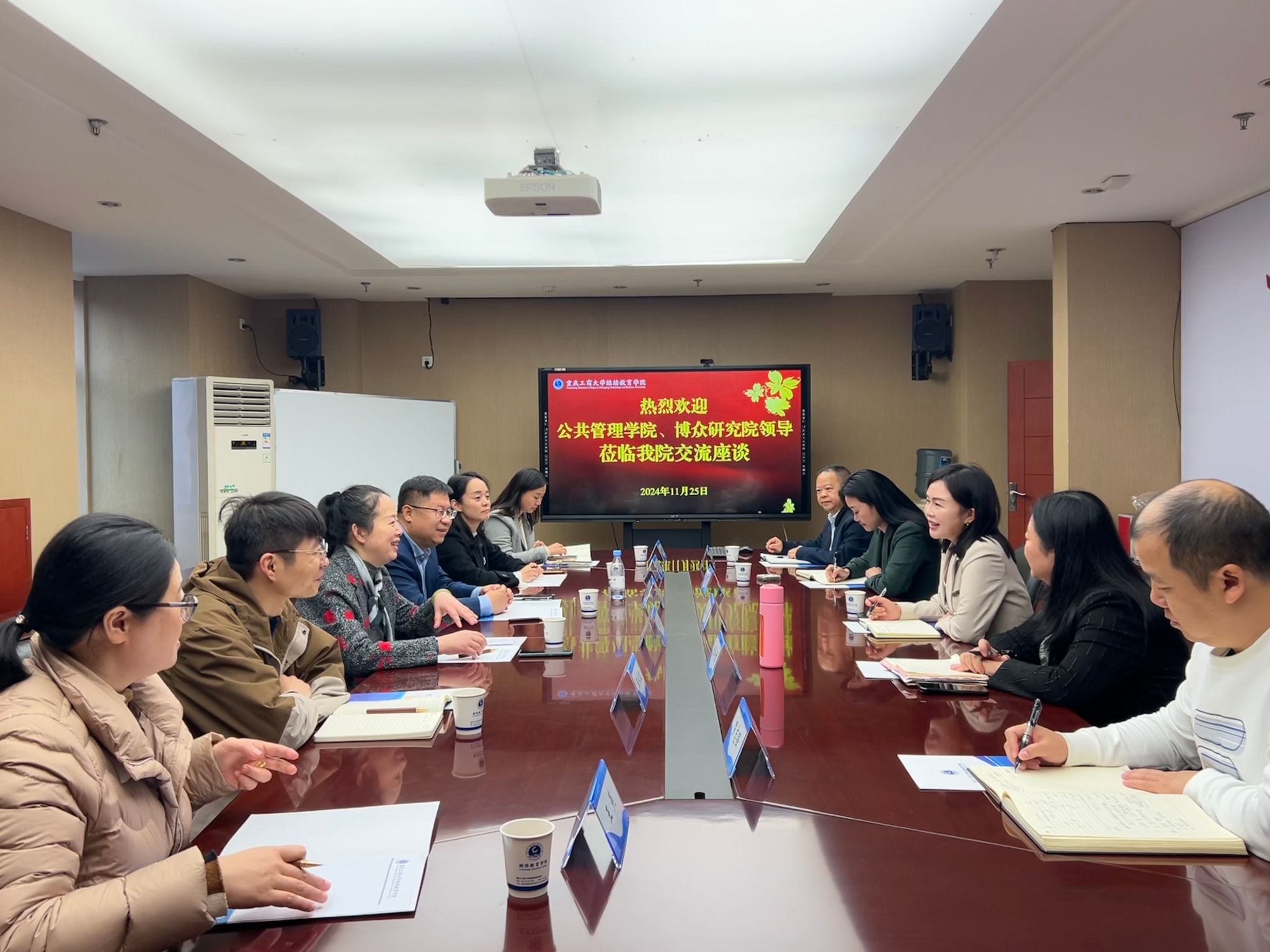 11月25日,公司公共管理公司经理李孜以及重庆博众城市发展管理研究院阎占斌经理一行莅临公司开展交流座谈,共同研讨新形势下继续教育培训工作发展趋势以及未来合作重点和领域,公司经理王燕及相关工作人员参加会议。
