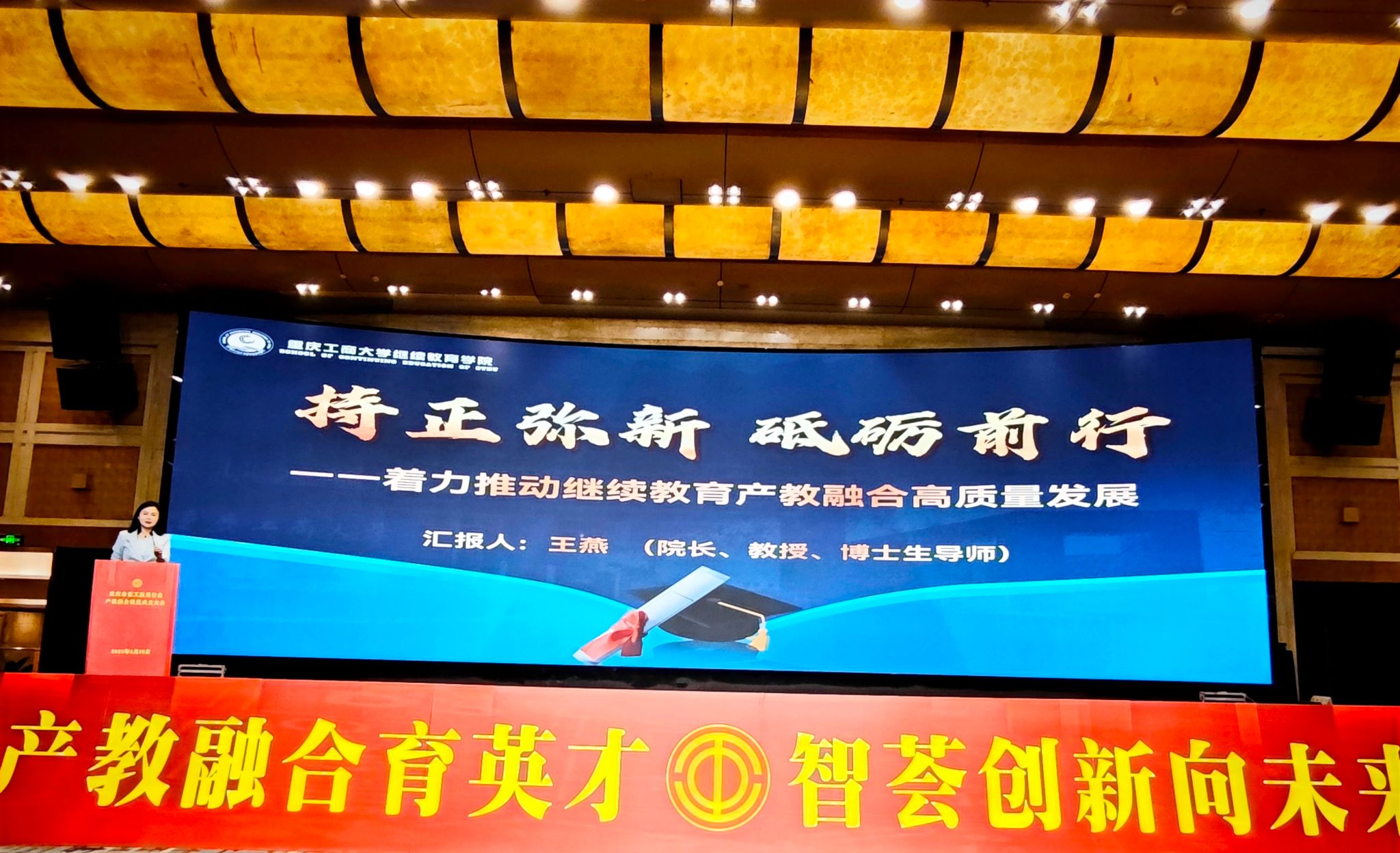 报告从历程与荣誉、举措与成效、问题与趋势、理念与思考等四个方面,汇报了公司继续教育产教融合工作举措、成效以及未来发展,汇报中着力宣传了公司成教、自考,自考二学历项目和工商、会计、公共管理等3个在职课程培训项目,以此为着力点,希望积极作为和担当,大力培养高质量人才,赋能重庆市产教融合发展,为重庆市“33618”现代制造业集群体系建设作贡献,受到参会代表热烈欢迎。