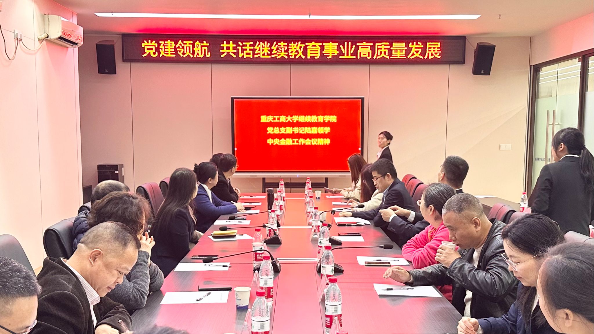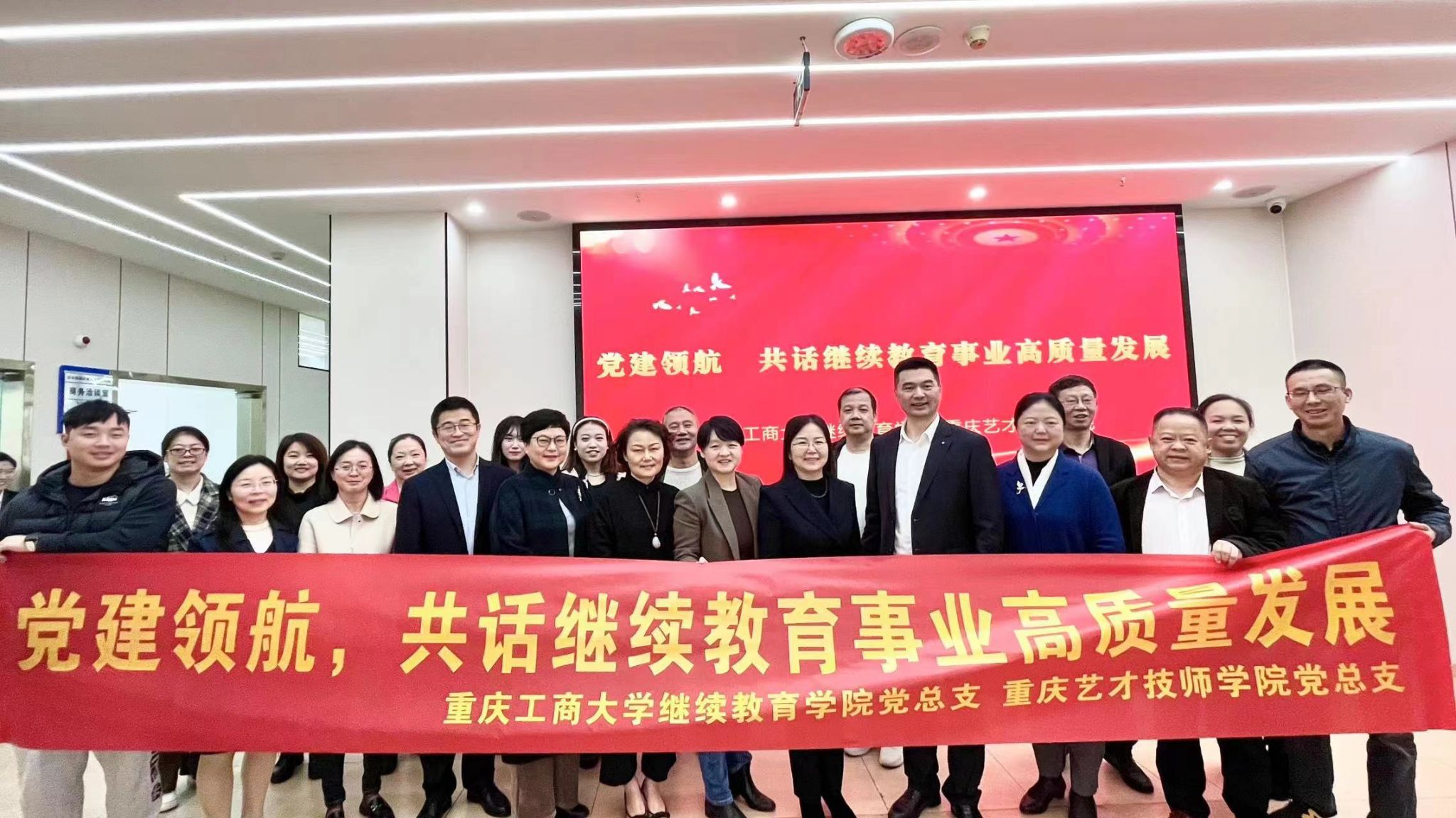 为充分发挥各方优势,取长补短,互帮互促,促进党建与业务工作共同发展、共同进步,进一步推动公司事业高质量发展,伟德国际bevictor1946党总支与公司学历教育校外教学点、公司党总支共建基层组织—重庆艺才技师公司党总支于11月23日上午共同开展了主题为“党建领航,共话继续教育事业高质量发展”座谈会,伟德国际bevictor1946经理杜朝辉、党总支副书记陆嘉,重庆艺才技师公司党总支书记、董事长王勇、副书记廖文宁出席了座谈会,伟德国际bevictor1946全体党员、教职工,重庆艺才技师公司部分党员、教师参加了座谈会。